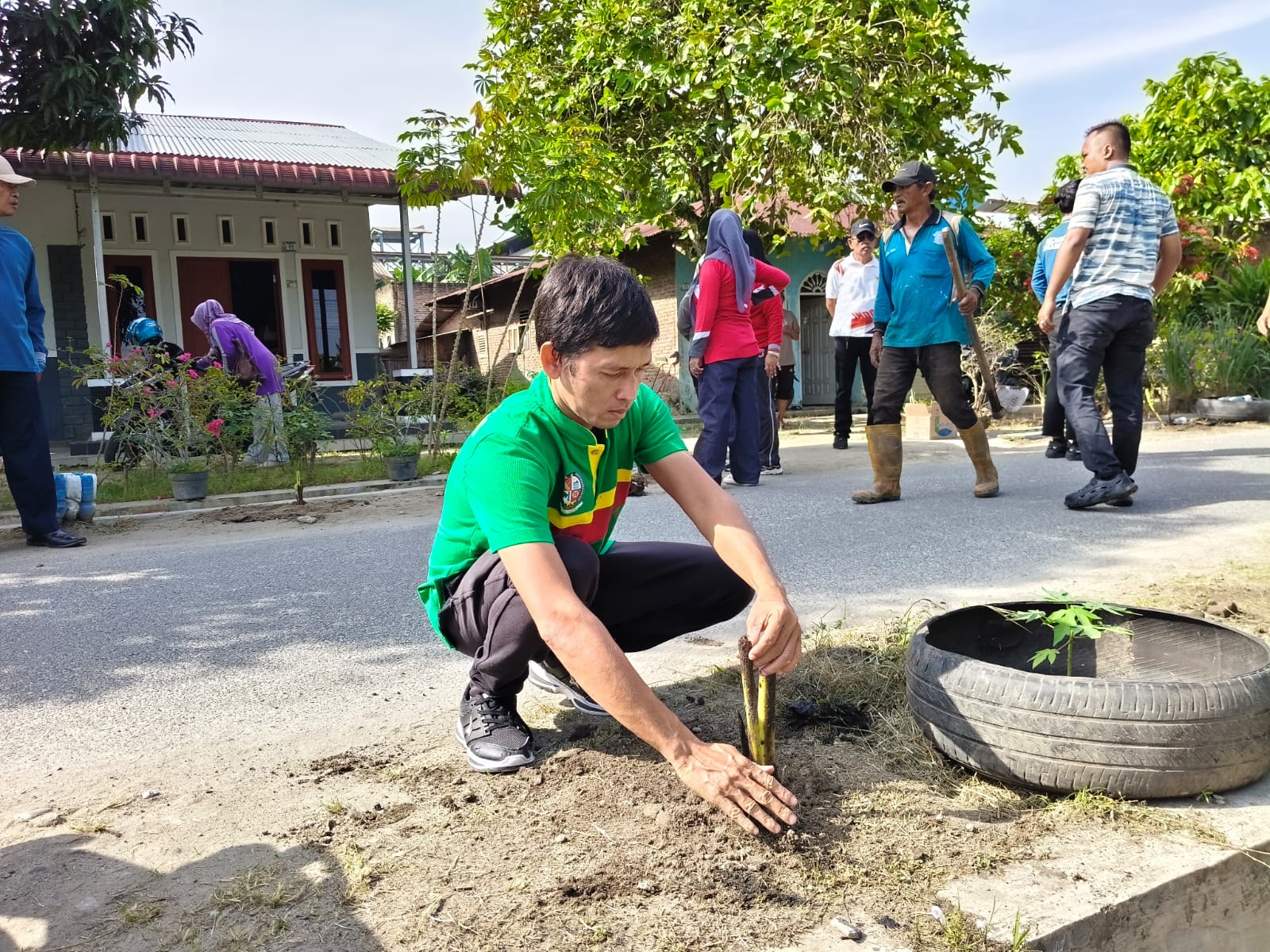 Kali ini, jajaran Disbudporapar Deli Serdang bergotong royong di Dusun VI Gang Karya, Desa Tumpatan Nibung, Kecamatan Batang Kuis, dengan melakukan penanaman tanaman ganyong, pembersihan parit, dan membuang sampah di sekitar lingkungan.