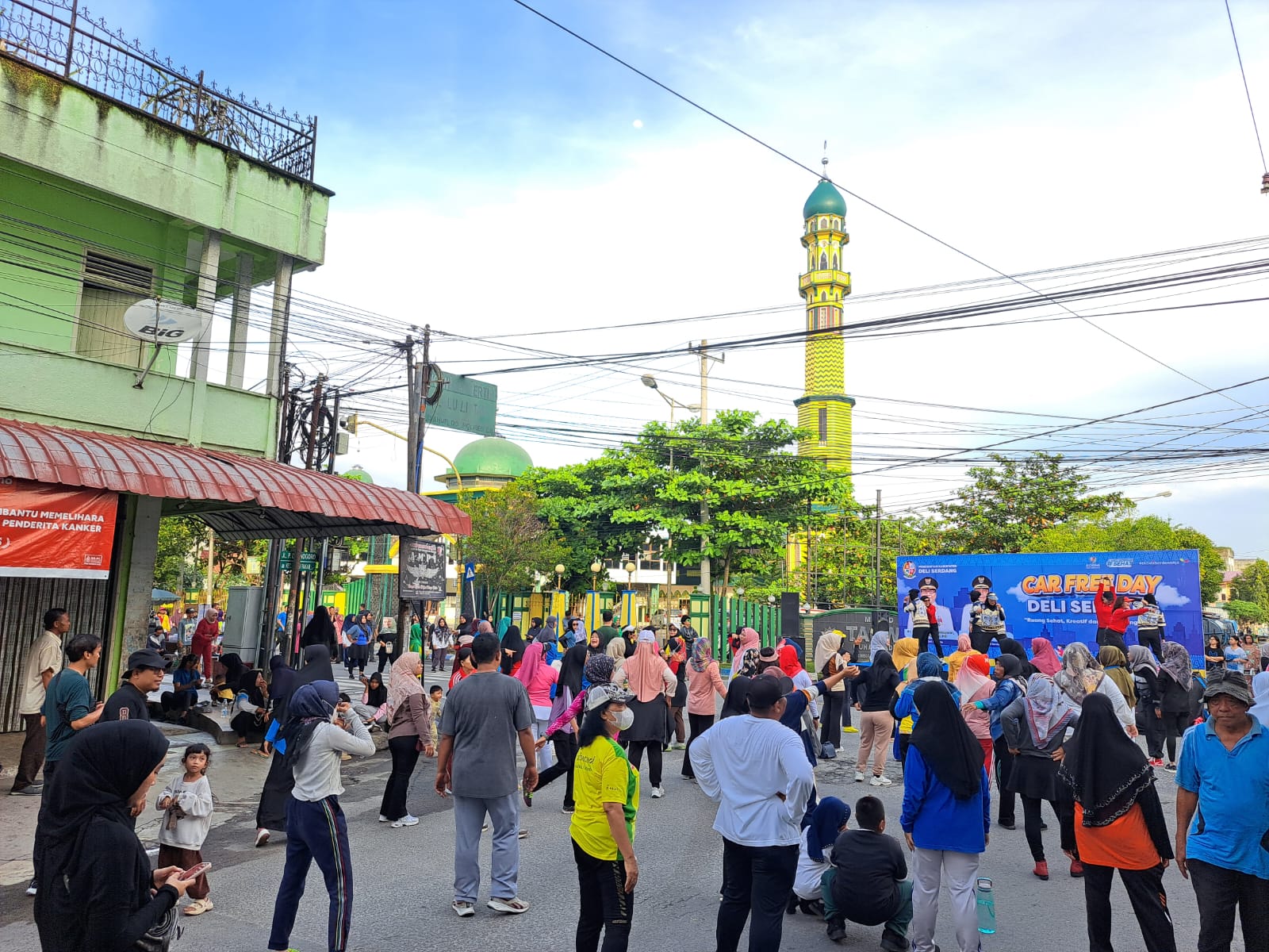 Pada saat yang sama, CFD kemeriahan juga berlangsung di pusat Kota Lubuk Pakam, tepatnya di Jl. Sutomo – Jl. Diponegoro. Dengan tema “Ruang Sehat, Kreatif, dan Ramah Lingkungan”, ribuan warga tumpah ruah menikmati suasana pagi yang penuh energi.