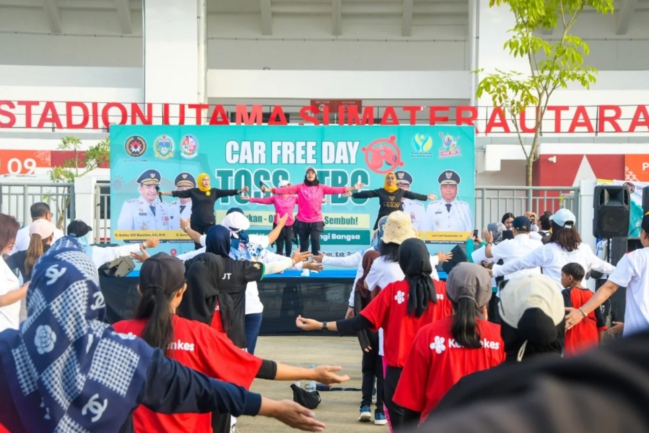 Kepala Dinas Kebudayaan, Pemuda dan Olahraga serta Pariwisata Kabupaten Deli Serdang, Yudy Hilmawan, SE, MM, mendampingi Sekretaris Daerah Deli Serdang, Dedi Maswardy, S.Sos., MAP, menghadiri kegiatan Car Free Day (CFD) yang dirangkai dengan kampanye Temukan, Obati, Sampai Sembuh (TOSS) Tuberkulosis (TBC) di Stadion Utama Sumatera Utara, Batang Kuis. (Minggu, 09/11/2025)