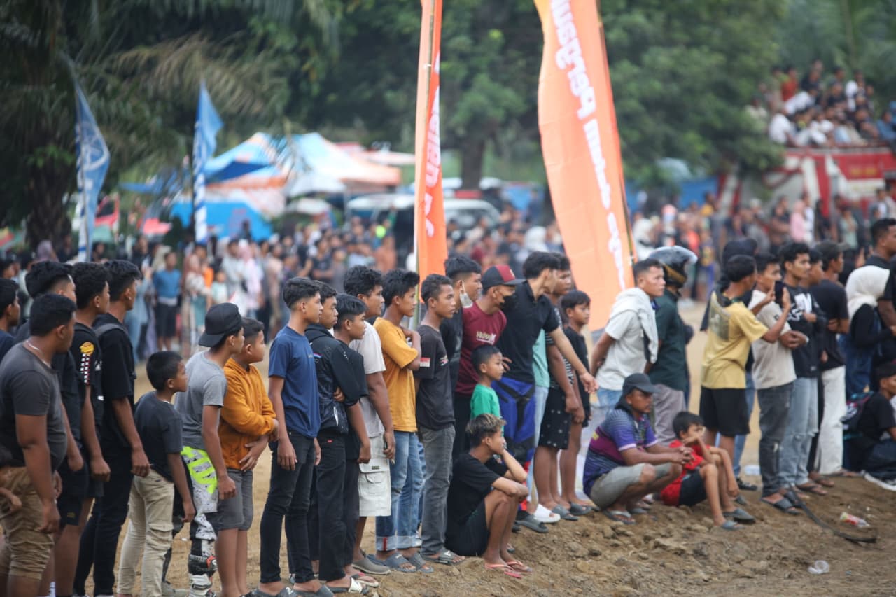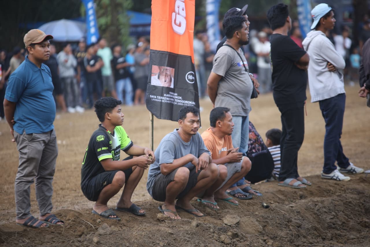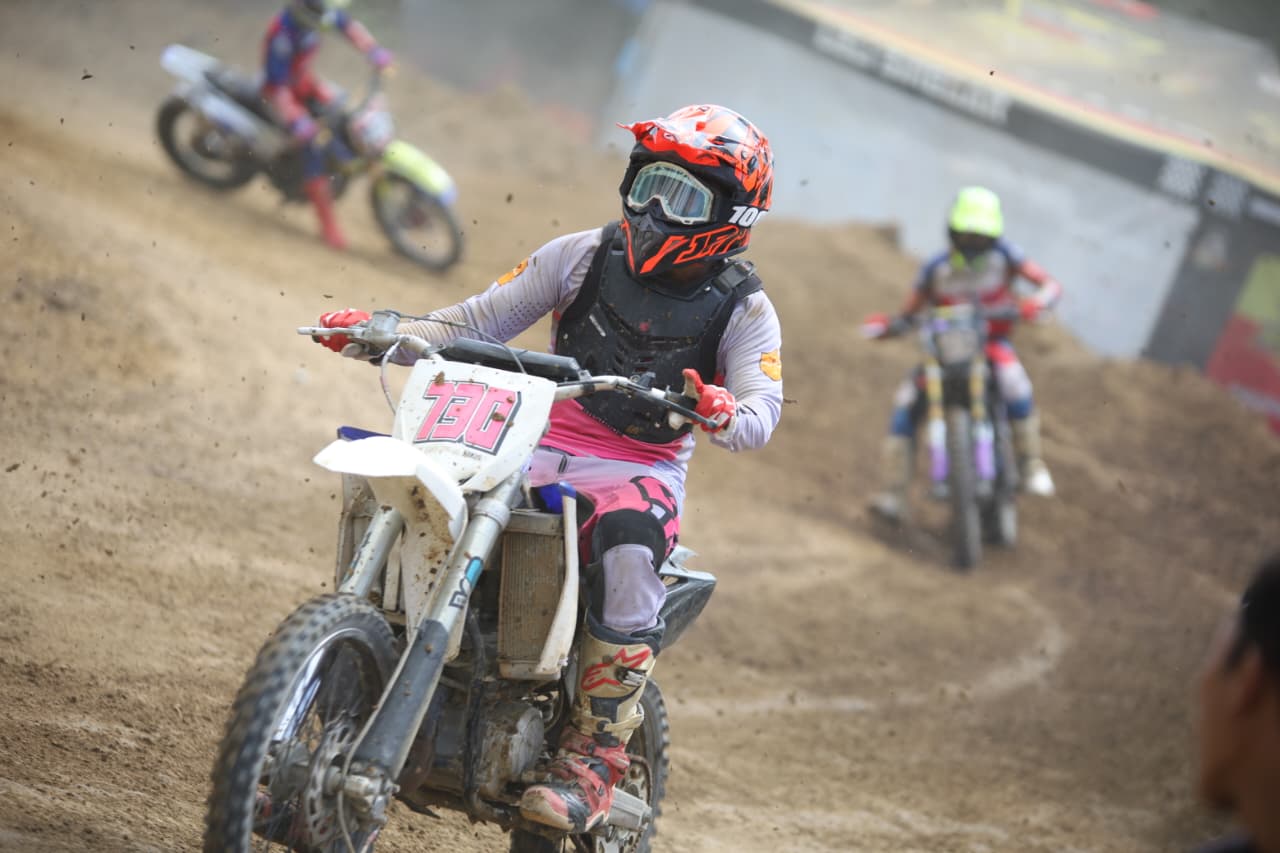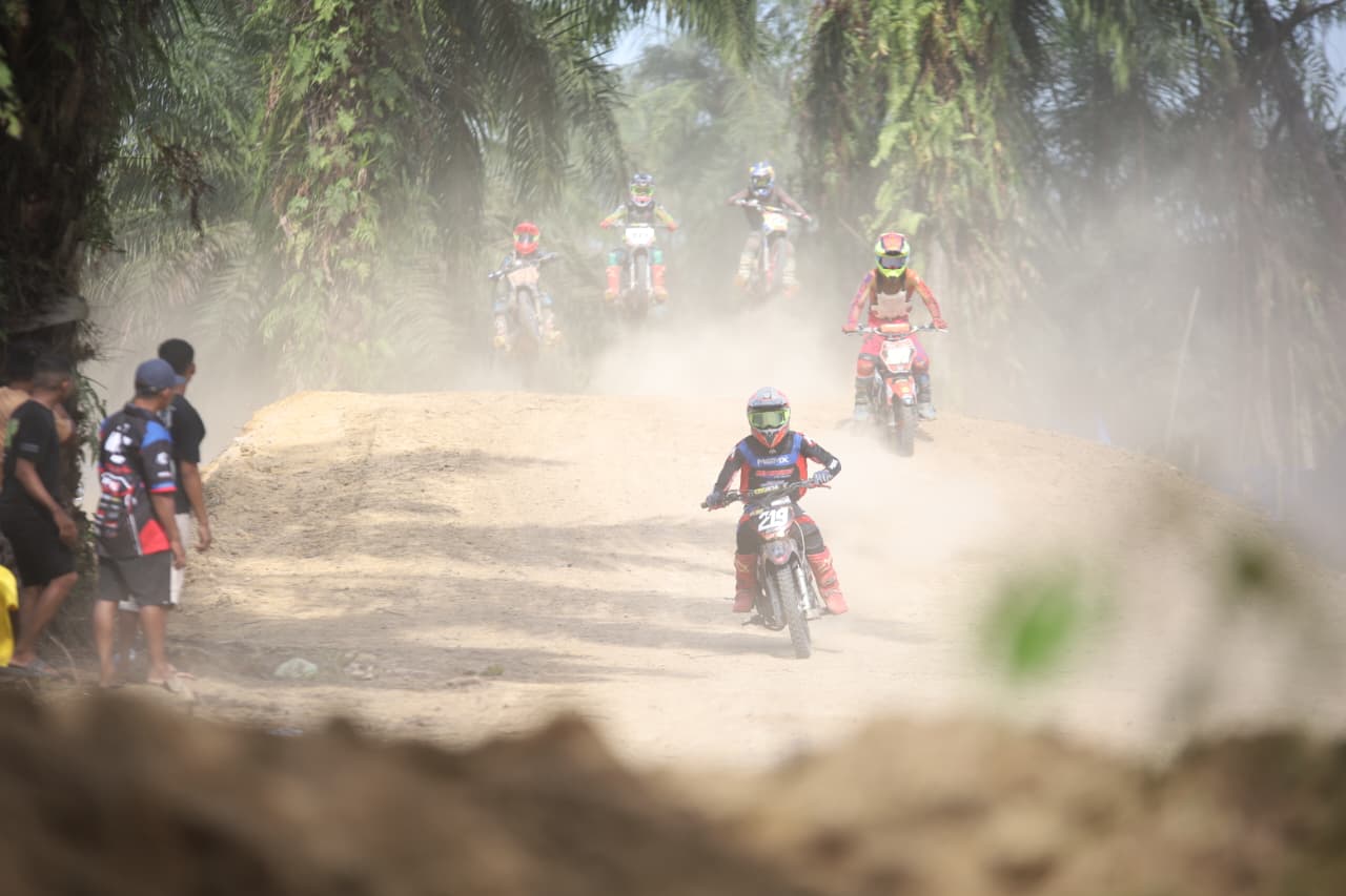 Perlombaan motocross yang digelar ini menghadirkan aksi-aksi menegangkan, ketika para pengendara saling menyalip di udara dan mengeksekusi lompatan panjang dengan presisi tinggi. Sorak sorai menggema penonton, menandakan tingginya antusiasme masyarakat terhadap ajang olahraga otomotif ini.