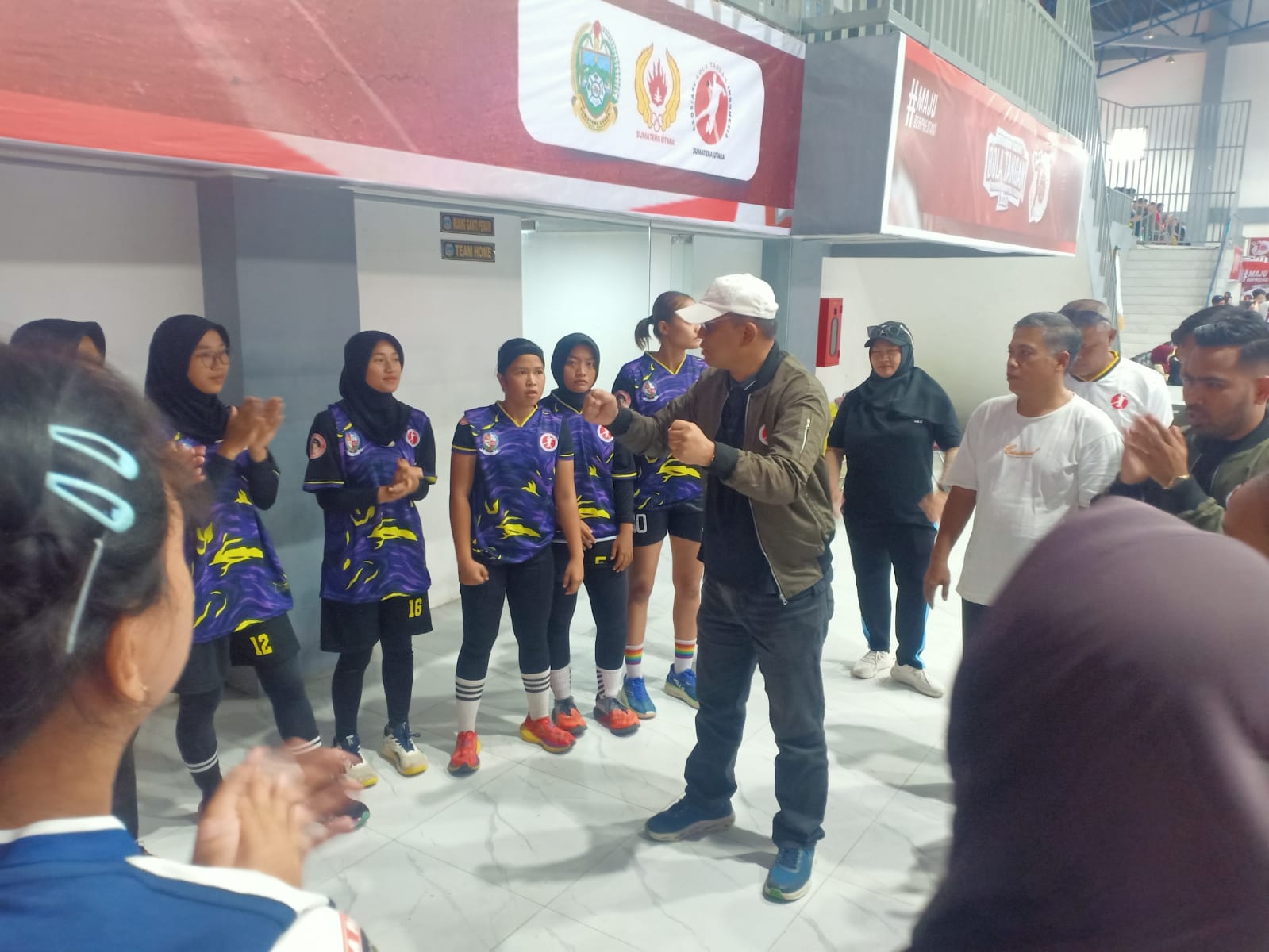 Kepala Dinas Kebudayaan, Pemuda dan Olahraga serta Pariwisata Kabupaten Deli Serdang, Yudy Hilmawan, SE, MM, Memberikan Semangat Dan Motivasi Kepada Atlet ABTI (Asosiasi Bola Tangan Indonesia) Deli Serdang Yang Bertanding Pada Kejurprov ABTI Sumut Tahun 2025 di GOR Futsal Disporasu. (Minggu, 28/09/2025)
