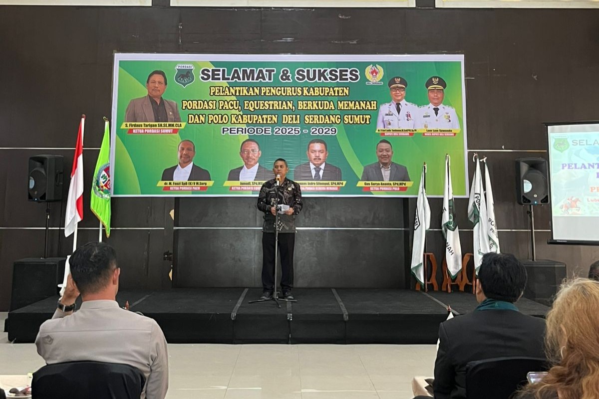 Kepala Dinas Kebudayaan, Pemuda dan Olahraga serta Pariwisata Kabupaten Deli Serdang, Yudy Hilmawan, S.E., M.M., Menghadiri Pelantikan Pengurus Kabupaten Persatuan Olahraga Berkuda Seluruh Indonesia (Pordasi) Cabang Pacu, Equestrian, Berkuda Memanah, dan Polo periode 2025–2029 di Pusat Promosi Produk Unggulan Daerah (P3UD) , Tanjung Morawa. (Jumat, 12/09/2025).