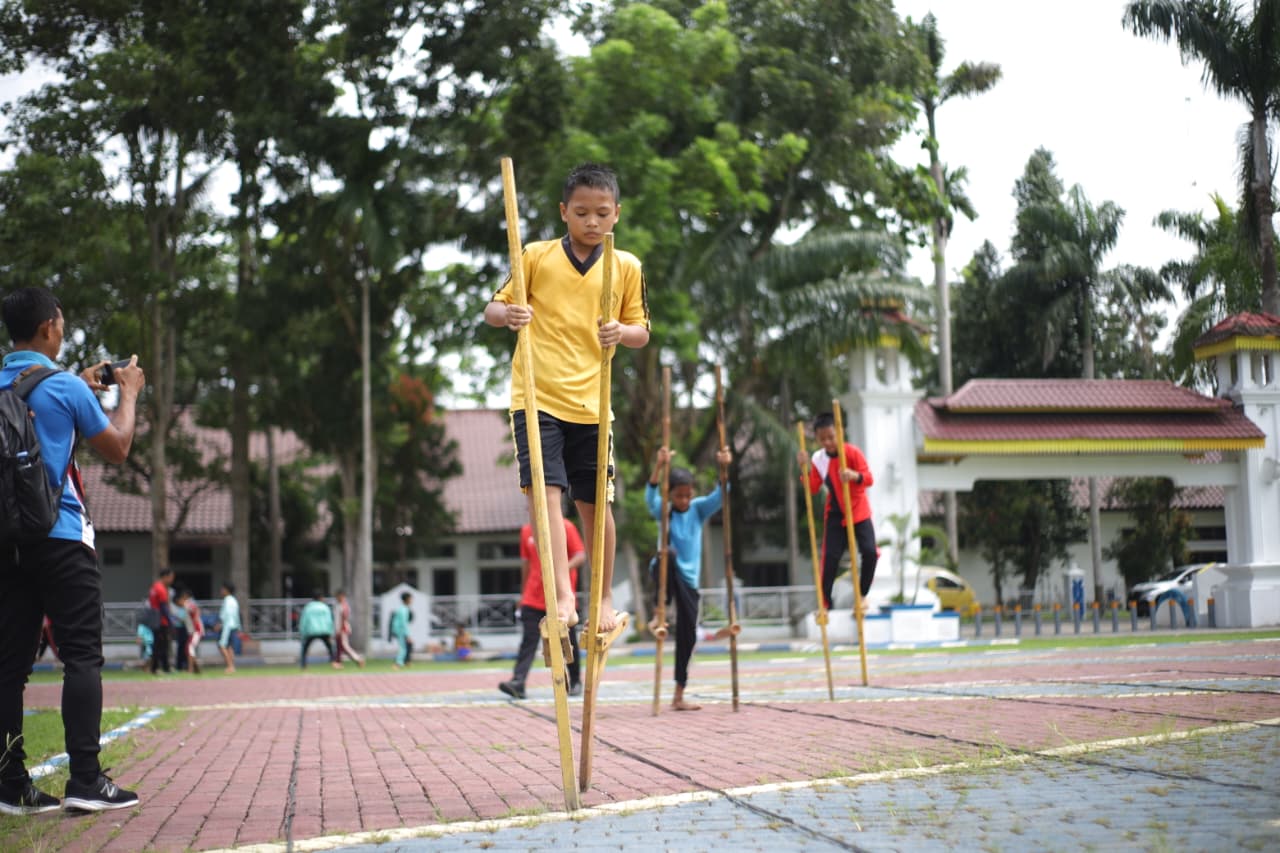 Kegiatan ini bukan sekedar ajang kompetisi, melainkan sebuah wadah strategi untuk memperkuat tali silaturahmi antar masyarakat dari berbagai kecamatan. Melalui permainan seperti gobak sodor, pecah piring, egrang, congklak, lari goni, dan engklek, para peserta yang merupakan siswa-siswa SD ini diajak untuk kembali berinteraksi secara langsung, melepaskan kemandirian pada gawai, dan merasakan kegembiraan dari aktivitas fisik yang penuh kebersamaan.