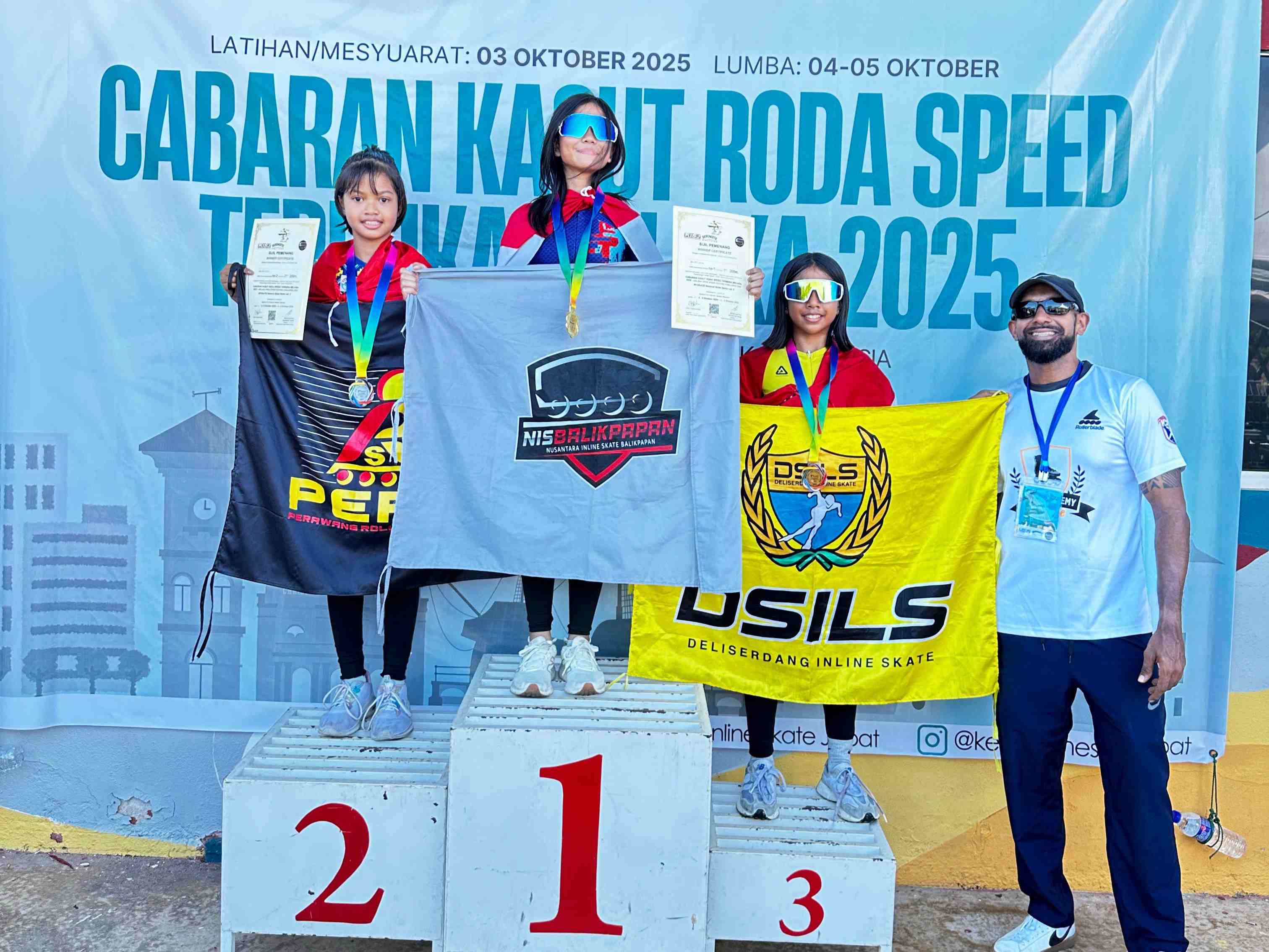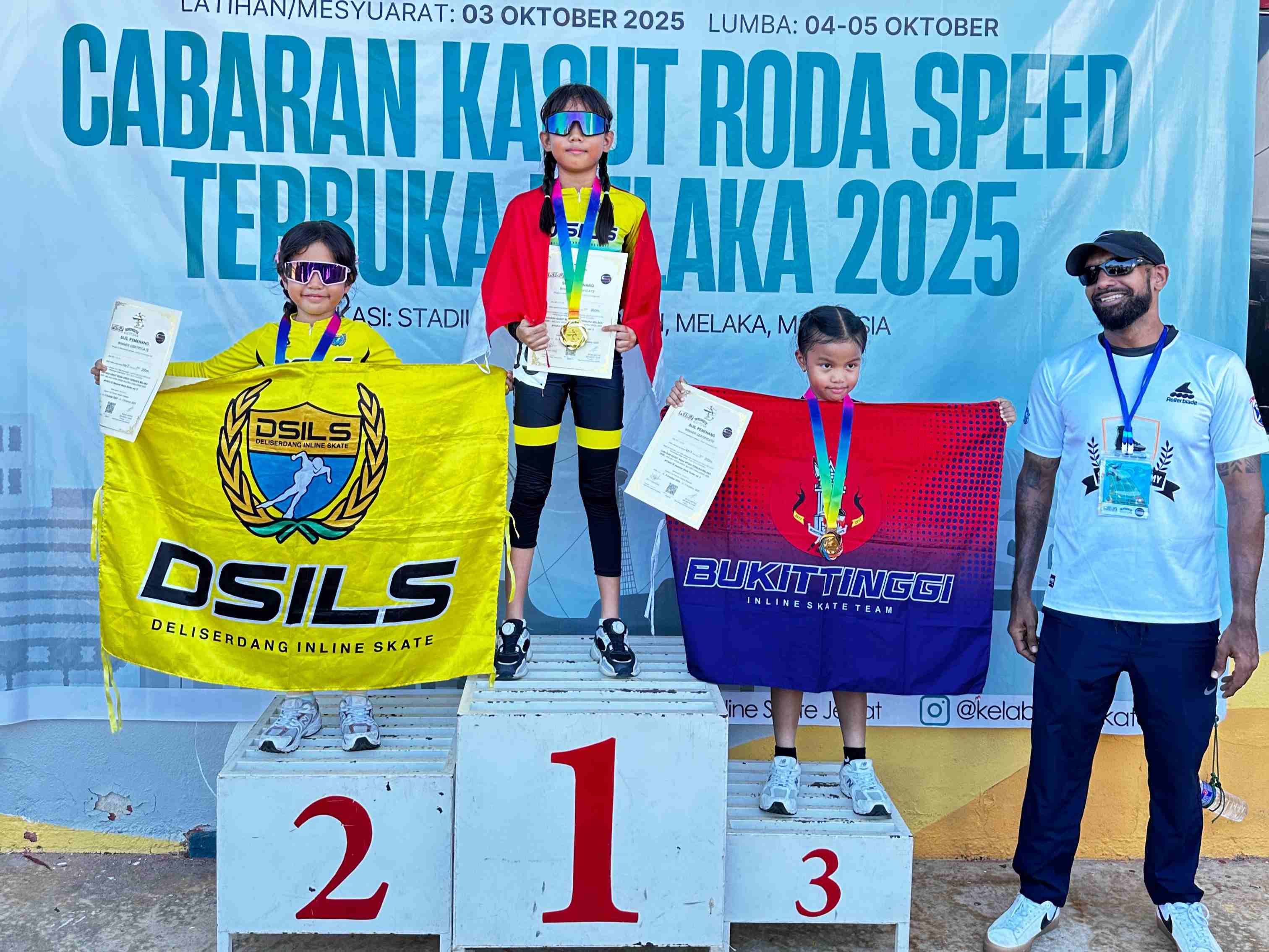 Prestasi Gemilang diraih oleh Atlet-atlet Sepatu Roda DSILS (Deli Serdang Inline Skate) pada ajang Cabaran Kasut Roda SpeedTerbuka Melaka 2025 di Malaysia